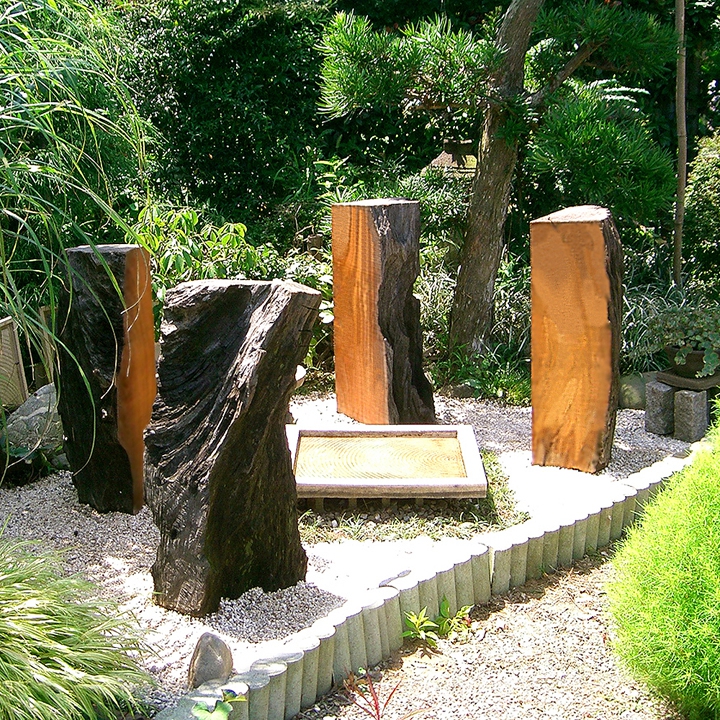 こうした古材は化石化していることで腐食することがなく、屋外における木製のオブジェとしての素材にも使用することができます。